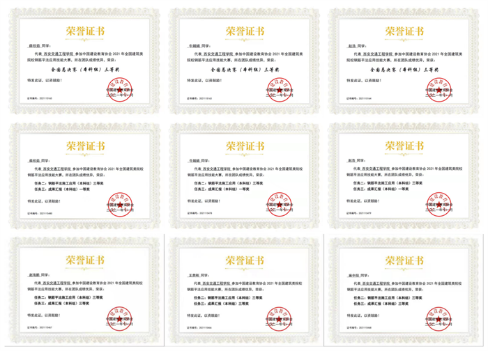 土木学子在2021年全国建筑类院校钢筋平法应用技能大赛全国总决赛中获奖