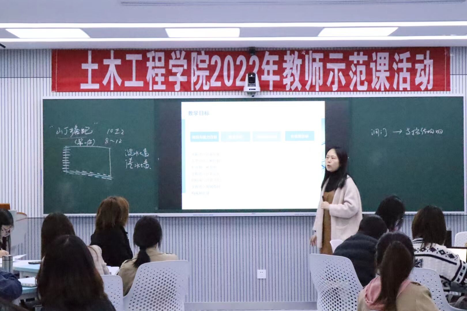 为加强教师队伍建设,发挥骨干教师示范作用,促进青年教师不断成长,4月1日下午,土木工程学院在7号教学楼205教室举办教师示范课活动。本次示范课由建筑工程教研室主任赵伟、工程造价教研室姚松源主讲,全体教师参加听课,副院长梁腾飞主持。