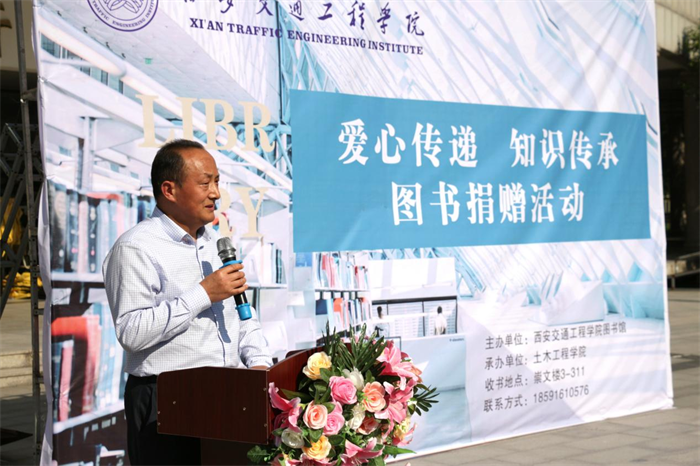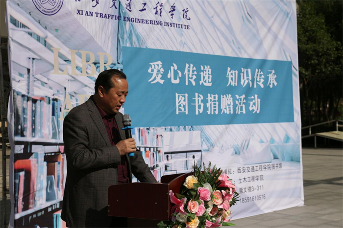 为创建书香校园,进一步扩充我校图书馆的馆藏资源,满足不同专业学生的多样阅读需求,引导全校师生以书为友,营造良好的读书氛围。5月16日下午,由我校图书馆和土木工程学院联合举办的“爱心传递 知识传承”图书捐赠活动在图书馆西广场举行。副校长王勇、图书馆馆长宇文高峰、学生处副处长钱穆萨、土木工程学院张院长、党委书记王鹏、图书馆副馆长黄晓燕及图书馆相关部室主任和土木工程学院师生代表参加活动,土木工程学院副院长梁腾飞主持图书捐赠活动。