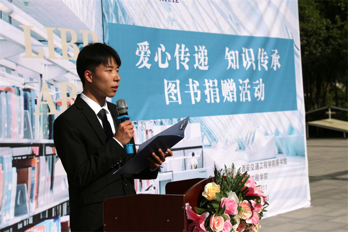 土木工程学院副院长梁腾飞主持图书捐赠活动