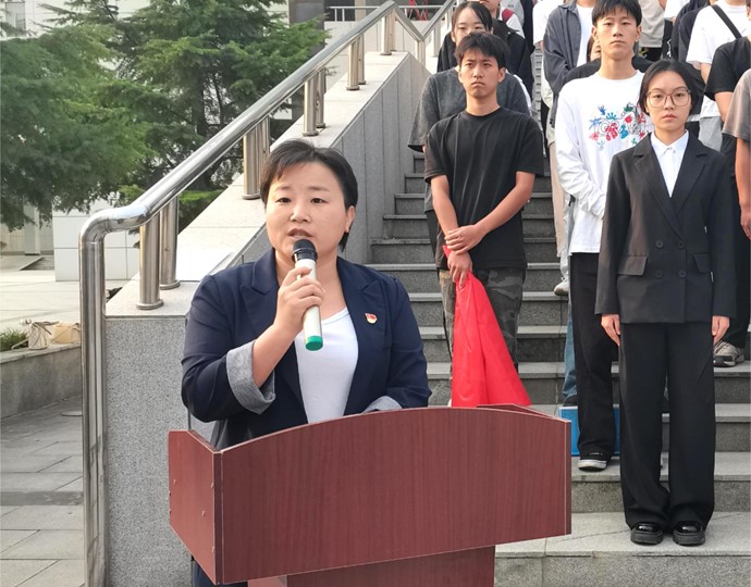活动最后,学院党委副书记兼副院长张雯雯在国旗前向师生们发表了寄语。她强调,在新时代的征程中,作为青年学子,必须勇于承担起责任,实践报国之志。她向全体师生提出了三点期望:要热爱祖国和学校;要努力学习,掌握技能;要树立远大理想,坚定目标。