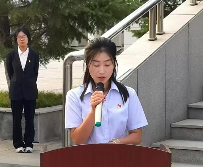 工程造价2104班学生代表牛雨朔在发言中表达了这一代青年在红旗下成长,以及他们决心奋勇争先,坚定理想信念,为推动中国式现代化贡献自己力量的决心。辅导员代表马红霞在发言中强调:强国复兴是每一位中华儿女的共同使命,鼓励学生积极投身祖国建设,努力掌握专业知识,展现文化自信。