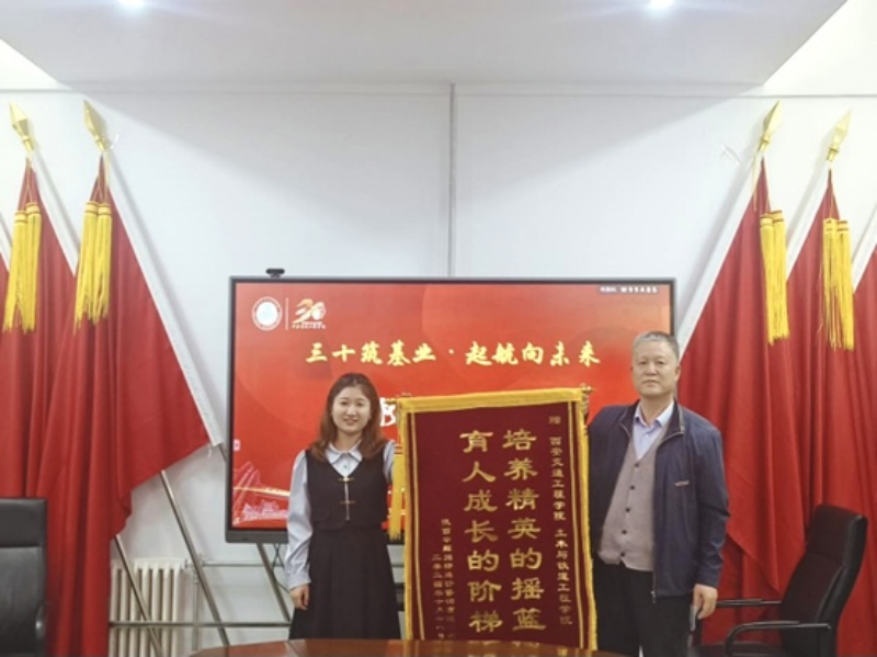 校友们在座谈交流中深情地回忆了在母校的美好时光,并就工作经验、生活感悟以及如何加强校企合作、促进学生实习就业等方面提出了建议。他们表示将继续关注学校的发展,并在各自的工作领域进一步加强与学校的交流合作,为学校的发展贡献力量;校友代表、陕西衡兴勘测规划设计有限公司总经理姬溶春,校友代表、陕西天地建设有限公司总经理贺裕龙分别向学院赠送了纪念品;校友代表郑萌代表陕西中辉招标造价咨询有限公司向学院赠送了锦旗。