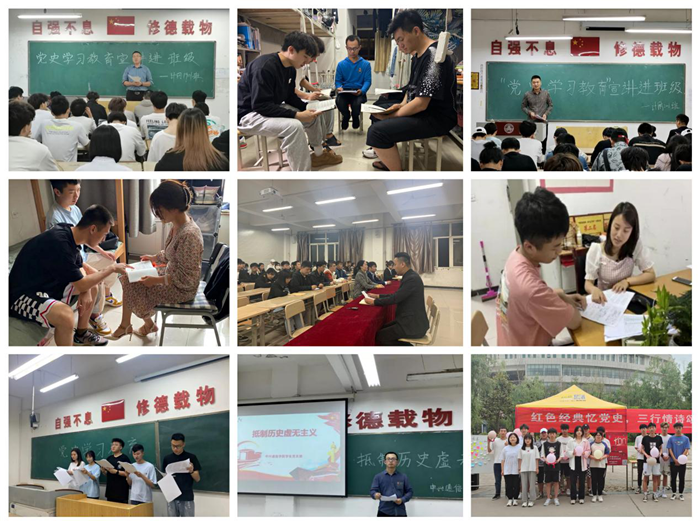 广泛宣传增氛围。充分运用各类阵地、平台多角度宣传党史学习教育内容,营造知史爱党、明史爱国的浓厚氛围。在官微开设“忆百年荣光 铭初心使命•百年华诞”栏目,将党史学习教育融入日常。学院抖音号、微信不间断推送活动视频并且在学院网站动态栏目开设“党建工作”专题,及时刊发学院开展党史学习教育的动态信息,深入宣传学院党总支在各项活动开展中的好做法、好经验和取得的良好成效。
