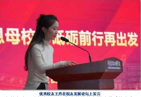 在校友发展论坛上,王丹作为继续教育学院优秀校友作了发言。她回忆在校时光,感恩母 校培养了团队合作、创新思维等能力。如今她是志丹县文物管理所讲解员,深感在校点滴帮助 她在工作岗位上出色完成任务。她向母校师生及工作人员致谢,鼓励学弟学妹珍惜时光、努力 学习,最后祝愿母校生日快乐、更加辉煌。