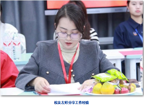 校友左婷从自身职业发展角度出发,讲述了如何从基层岗位员工,凭借在学院积累的知 识和不懈学习的毅力,一步步晋升。她指出学院给予的不仅是知识技能,更是一种积极向上、 不断进取的精神。
