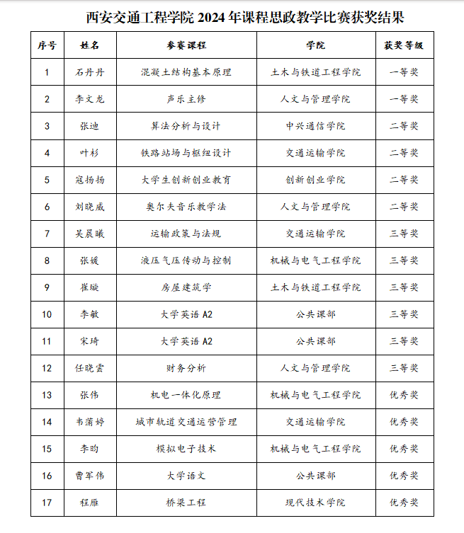 必威电竞竟猜 2024年课程思政教学比赛获奖结果公示