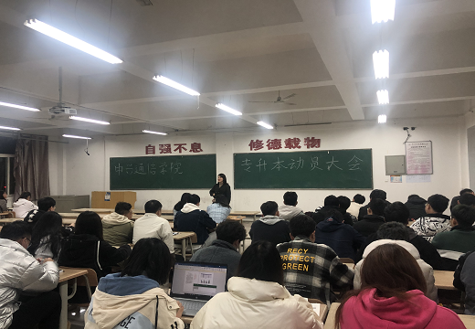 ——考前辅导,动员报考。一是合理安排复习时间,讲究学习方法,提高学习效率。二是劳逸结合,调节好生活的作息。三是有信心,戒骄戒躁,严格要求自己。四是营造学习氛围,共同进步。辅导员贾晶老师号召在座各位同学珍惜专升本机会,制定有效学习计划,采用科学学习方法,提高学习效率,考出优异的成绩,开启人生更加辉煌的篇章。同时,也提醒同学们,专升本没有捷径可走,只能依靠个人的努力,平时一定要脚踏实地,把相应的课程学好。