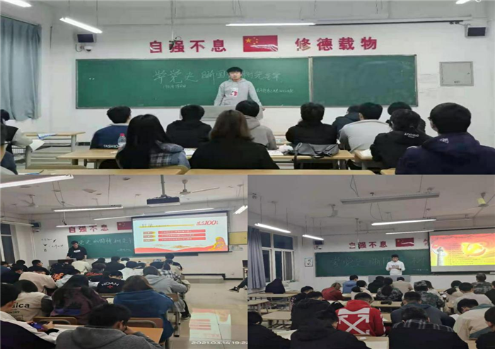 ——召开班级主题研讨会。为激励全院学生向先锋党员模范学习,强化社会主义核心价值观,该院团总支于3月14日组织各班团支部开展“学党史、系国情、树先锋”主题研讨会,此次会议带领各班同学重温建党之路的艰辛与不易。通过开展此次研讨会使同学们树立了“传承红色基因,牢记初心使命”的价值观,从而把党的发展史铭记于心,在今后的学习生活中从党的历史中总结经验教训,汲取智慧力量,坚定信心决心,为我校迎评促建奠定坚实基础。