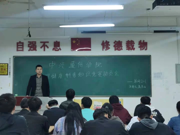 各年级辅导员老师召开了心理健康科普知识竞赛动员会,向全体学生传达了学生处的工作布置。同时,向学生详细介绍了竞赛的安排:各二级学院对报名学生集中笔试以完成初试选拔;初试选拔出的学生分成若干代表队,以团队形式比赛进行复试;复试后各学院选出3-6名学生进入学校总决赛;进入总决赛的同学学校进行知识强化培训,取成绩最优的前三名代表我校参加省赛。