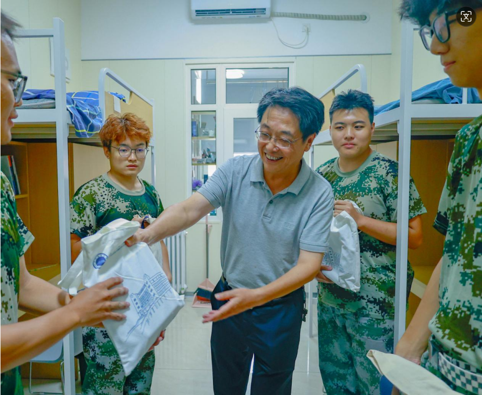 在慰问过程中,曹庆年校长还特别回忆起了自己当年上大学时的军训经历。他深情地说:“军训是我们大学生活的第一堂课,它不仅教会了我们纪律与服从,更让我们学会了坚持与拼搏。那段日子虽然艰苦,但也是我人生中最宝贵的回忆之一。我希望你们也能珍惜这段时光,从中汲取力量,为未来的学习和生活打下坚实的基础。”为了鼓励新生们更好地投入学习,学院领导还特意准备了一批学习用品,包括笔记本、U盘、书包等,作为礼物赠送给每一位新生。这些学习用品不仅实用,更寄托了学院对新生们的殷切期望和美好祝愿。