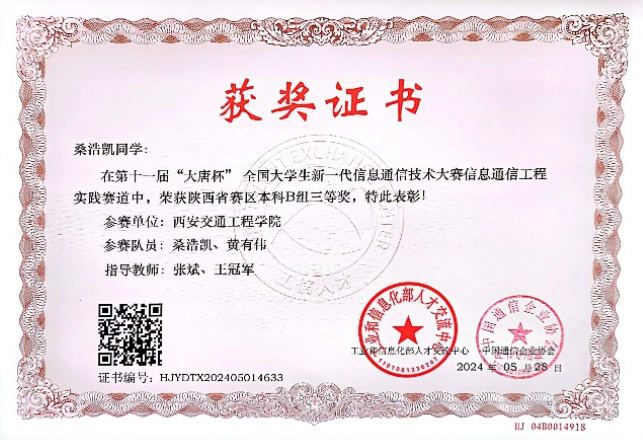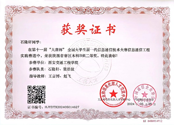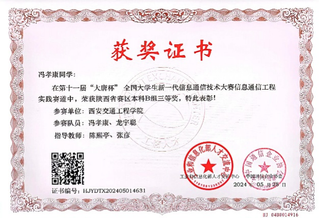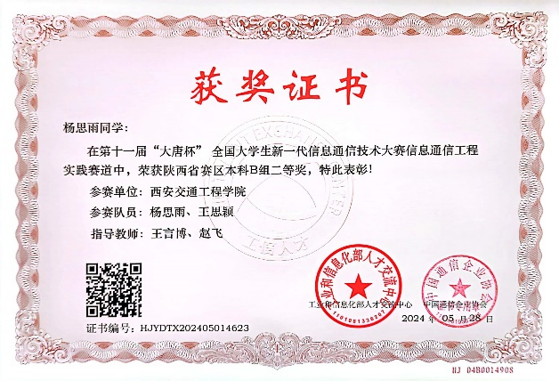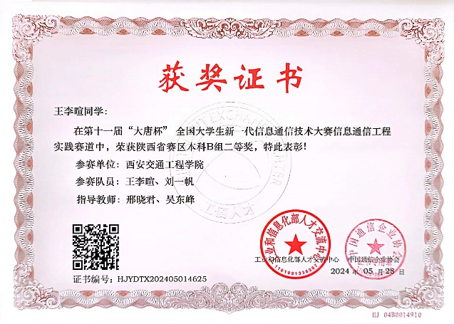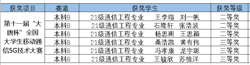 近日,第十一届“大唐杯”全国大学生移动通信5G技术大赛获奖结果出炉,我院学生荣获二等奖3项,三等奖3项。自启动比赛工作以来,在学院各级领导给予大力支持下,参赛团队对备赛工作进行了细致的部署,经过充分的赛前辅导和准备,共12名同学荣获奖项,在本次比赛中取得了优异的成绩。