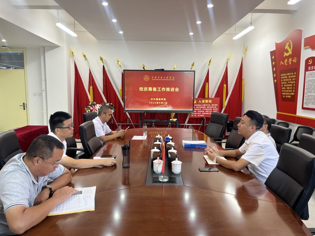 为落实落细我校30周年校庆筹备工作各项事务,我院提前部署重点工作,明确任务目标,有序推进落实。2024年9月3日于员活动室召开校庆筹备工作推进会。本次会议由学院党委书记张斌主持,中兴通信学院院长李乃乾、副院长牛作领、副院长王冠军以及学院校友联络专员郭锦亮参会。