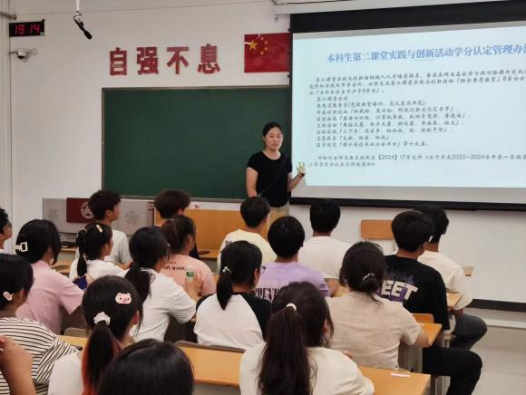 为了帮助新生快速融入大学生活,明确学习方向,激发奋斗热情。2024年9月8日,我院开展2024级新生“开学第一课”主题班会。   班会伊始,我院辅导员对2024级新生的到来表示热烈欢迎,向新生们介绍了学校概况、学业要求、角色适应及安全教育等方面进行了详细介绍、解读和指导,引导新生形成正确的意识观念。帮助学生明确学习目标,了解课程设置、教学安排及考核标准,激发学生的学习动力,引导新生们积极调整心态,适应新的学习生活方式,建立和谐的人际关系,实现自我成长与蜕变。期间,辅导员们特别强调了预防电信诈骗,增强学生防范意识,保护好自己的财产安全和个人信息。最后,辅导员强调用电安全,禁止使用大功率用电器,以确保自身和他人的人身安全。