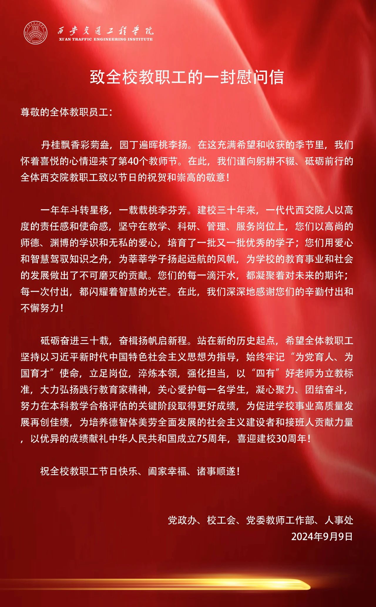 致全体教职工的一封慰问信