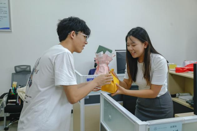 校务楼中,中兴通信学院团总支书记薛华老师带领学生干部们向学校领导班子——张晋生理事长、张慧理事、李萍书记、曹庆年校长、赵征校长,以及工会主席张庆生,逐一表达了诚挚的谢意。同时,他们还深入学院各个部门,为辛勤耕耘在教学一线的任课老师们送去了节日的惊喜与温暖。整个慰问过程中,师生间洋溢着浓浓的节日氛围与深厚的师生情谊。礼物虽小,却承载着学子们无尽的感恩与敬意,象征着对教师们辛勤付出的深刻认同与崇高敬意。他们的无私奉献为学院的学术氛围和学生的成长进步,注入了源源不断的动力。