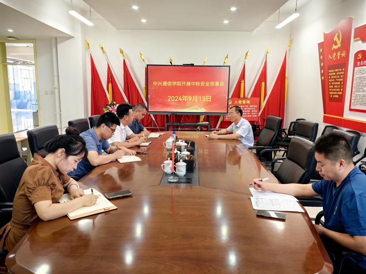 9月11日,中兴通信学院召中秋工作部署会,学院院长李乃乾、副院长牛作领、副院长王冠军及全体辅导员出席会议,会议由党委书记张斌主持主持。张斌首先强调了中秋节期间安全工作的重要性,我院应予以高度重视,切实增强安全意识,确保师生人身财产安全。接着,对假期期间的安全工作进行了全面部署。