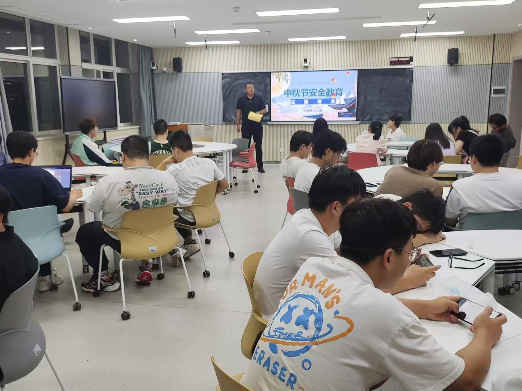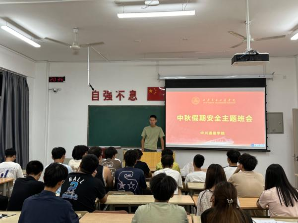 中秋佳节临近,为增强学生的安全意识,确保学生度过一个平安、快乐的假期,中兴通信学院辅导员于9月12日,在各自习室开展中秋假期安全主题教育班会。