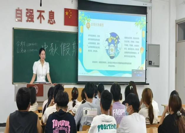 会上,辅导员向学生详细讲解了假期当中可能面临的安全风险及应对措施。在选择交通方式上,提醒学生遵守交通规则,不闯红灯、不逆行、不乘坐非法营运车辆,且注意返校时间。此外,还特别强调了学生出门在外要加强防范意识,安全意识,要时刻注意自己的言行举止。学生认真聆听,积极参与讨论,纷纷表示会牢记安全知识,预防为主,遵守学校的各种规章制度。通过此次主题班会,进一步提高了学生的安全意识和自我保护能力,为学生中秋假期安全筑牢坚实的防线,相信学生们能够度过一个安全愉快的中秋佳节。
