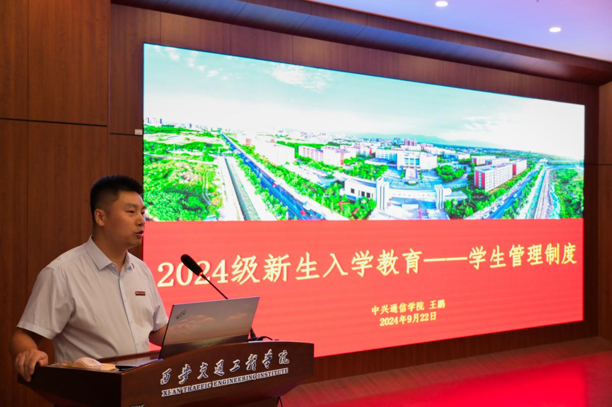 为深入贯彻落实党的二十大精神,加强学生日常行为规范教育,提升学生综合素质,引导学生树立健康、文明、向上的形象。引导2024级新生深入了解我校学生管理相关规定,提高遵守校规校纪意识,养成独立自主的学习生活习惯,顺利适应大学生活。9月22日下午,新生管理规章制度教育讲座在集贤楼多功能厅顺利开展。讲座由中兴通信学院王鹏老师主讲,中兴通信学院2024级全体新生参加。