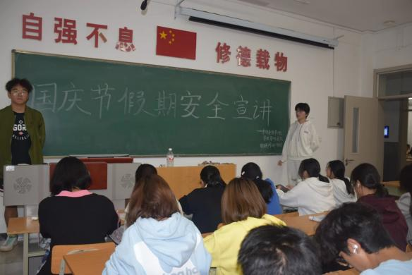 在班会上,各班学长导师讲解了假期中可能遇到的各种安全问题,包括交通安全、饮食安全、社交安全等。假期中,大家可能会参加各种社交活动。在与他人交往时,要保持警惕,不要轻易相信陌生人的话,不要随意透露个人信息。如果遇到可疑情况,要及时向学校或公安机关报告。另外,大家也要合理安排假期时间,不要过度沉迷于游戏或娱乐活动,要保持良好的作息习惯,适当进行体育锻炼,让自己的假期生活更加充实和有意义。班会的尾声,各位学长导师再次强调了安全问题,每个人都是自己的安全第一负责人。最后,在这个国庆节,学长导师们也祝大家假期快乐。