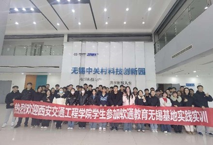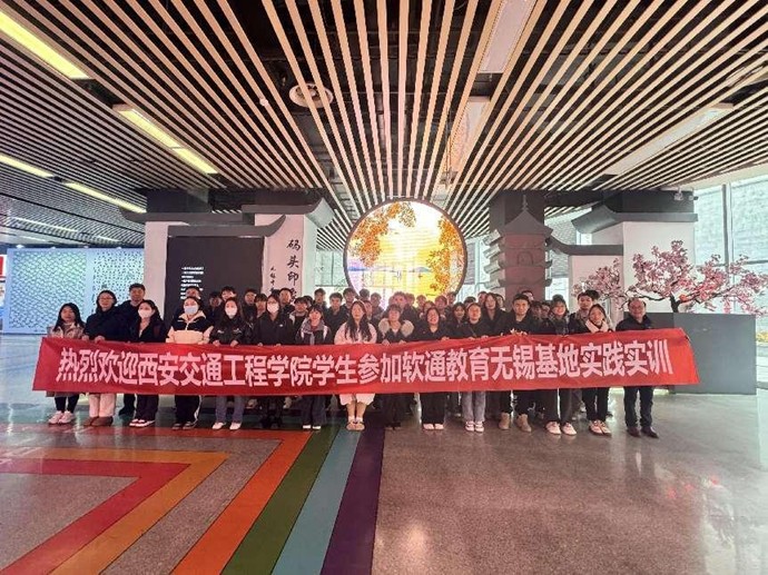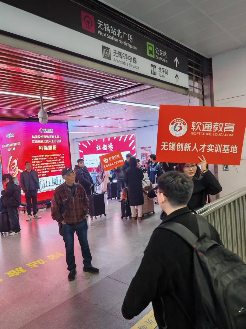 北京软通动力无锡创新人才实训基地负责人黄老师、基地毕业实习班主任吴老师专程在无锡火车站出站口迎接我院师生,合影留念,一起乘坐大巴赶赴无锡中关村科技创新园。