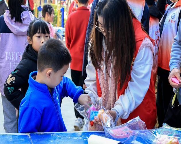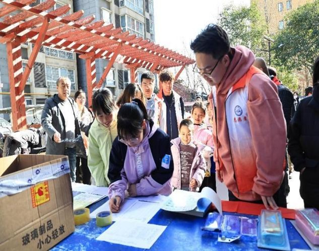 这边宣传单页刚刚递出,那边小朋友们就被吸引过来。志愿者们亲切地招呼孩子们,打开装满文具的箱子,将崭新的文具盒、五彩的画笔等文具,一一发放到他们手中。孩子们眼中闪烁着喜悦与好奇,迫不及待地摆弄起新文具,纯真的笑声回荡在社区上空。这些文具不仅是学习的助力,更是爱心的传递,激励着孩子们在求知路上奋勇前行。