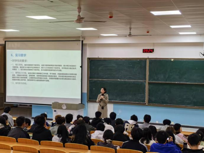 我院组织学生开展讲座,主要介绍认知实习内容及目标,包括电子信息专业课程设置及完成学业所具备的基本条件,使学生了解到接下来学习的主要方向和所需的科学素养。