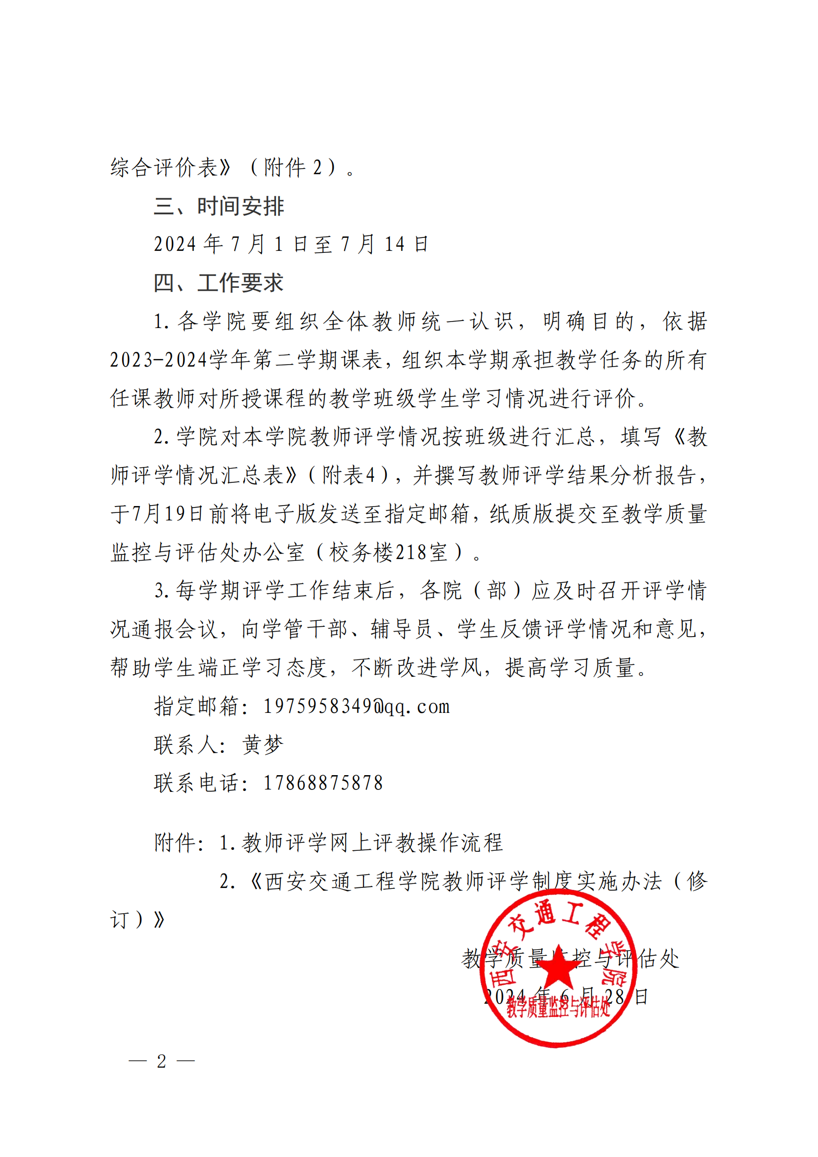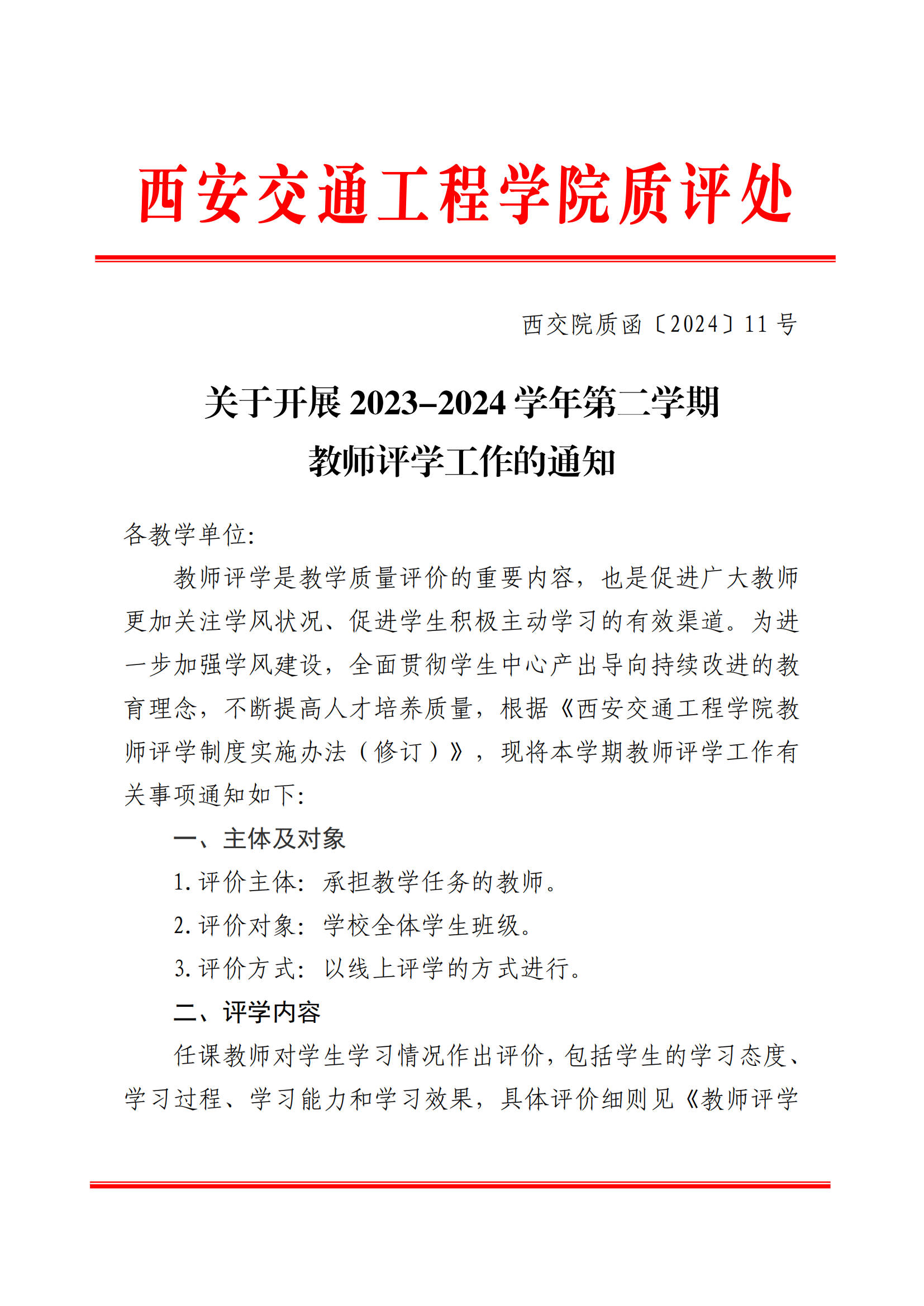 关于开展2023-2024学年第二学期教师评学工作的通知