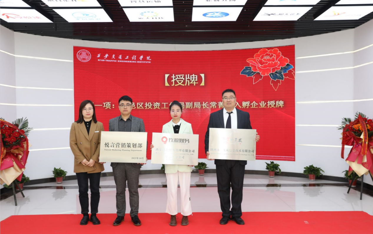 仪式上、鄠邑区投资工信局副局长常菁为三家企业授牌。