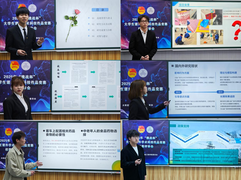 校赛阶段,参赛项目团队结合PPT系统阐述各项目的科学性、创新性等内容,围绕科技发明、人工智能、非遗文化、资源利用等多个主题领域展开,以实物模型、系统软件、调研报告等形式充分展现项目成果、创新点、发展前景。展现了我校学子锐意创新的朝气、敢为人先的锐气。评审老师们从数据严谨性、技术可行性、社会价值等维度提出针对性建议,他们强调,优秀作品需兼具“创新性、科学性与实用性”,如人工智能项目应关注实际应用场景,社科类研究需扎根社会需求等,并对各个项目组给予了中肯的建议或意见。经评委团合议,最终选出22件作品进行进一步包装打磨。