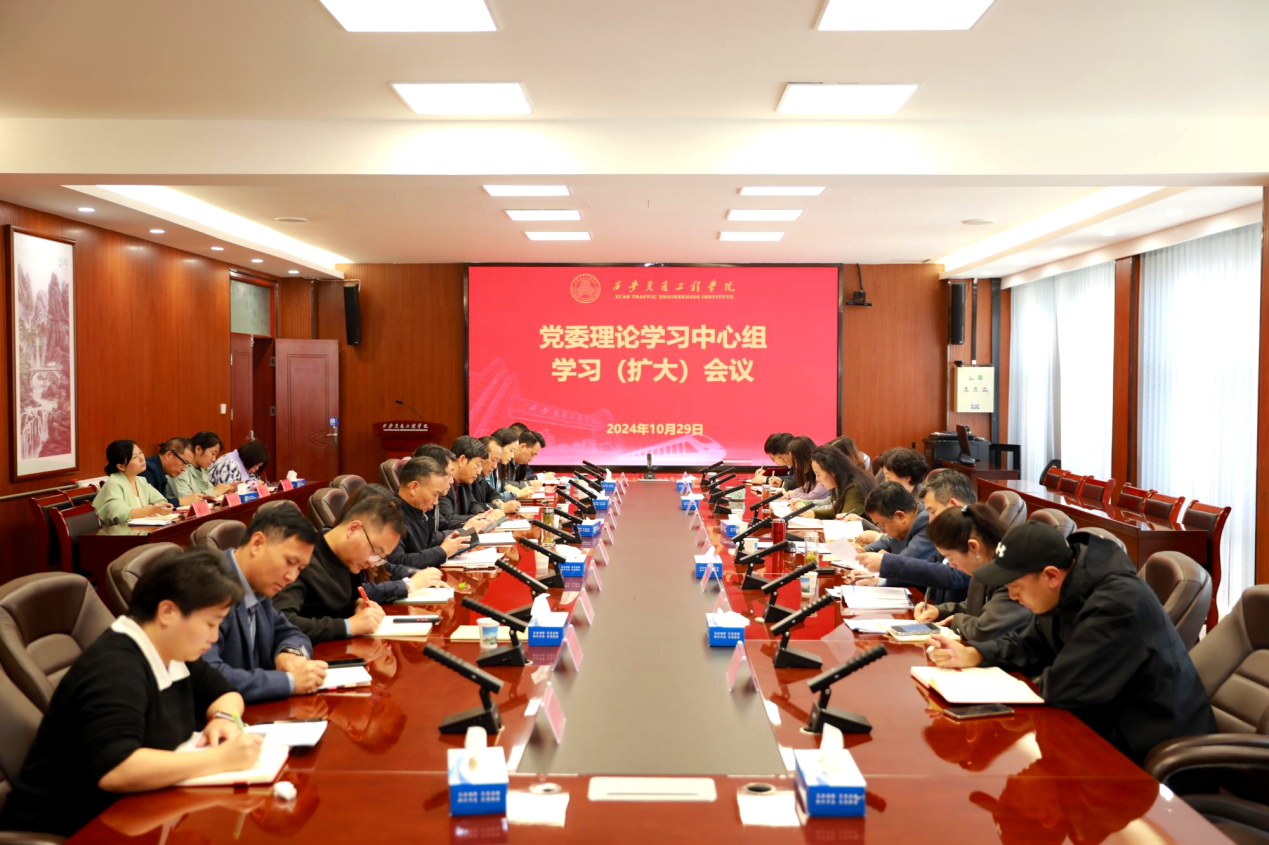 10月29日,我校 2024 年第 6 次党委理论学习中心组学习(扩大)会议于第一会议室召开,学校党员校领导、党委委员、纪委委员、党委各职能部门负责人、工会主席、团委书记、各二级党组织负责人参会。会议由党委书记李萍主持。