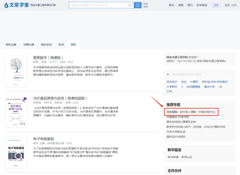 方法一:进入我校图书馆电子资源→文泉学堂必威电竞竟猜 知识库 → 点击右侧推荐专题 → 点击 进入专区阅读页面