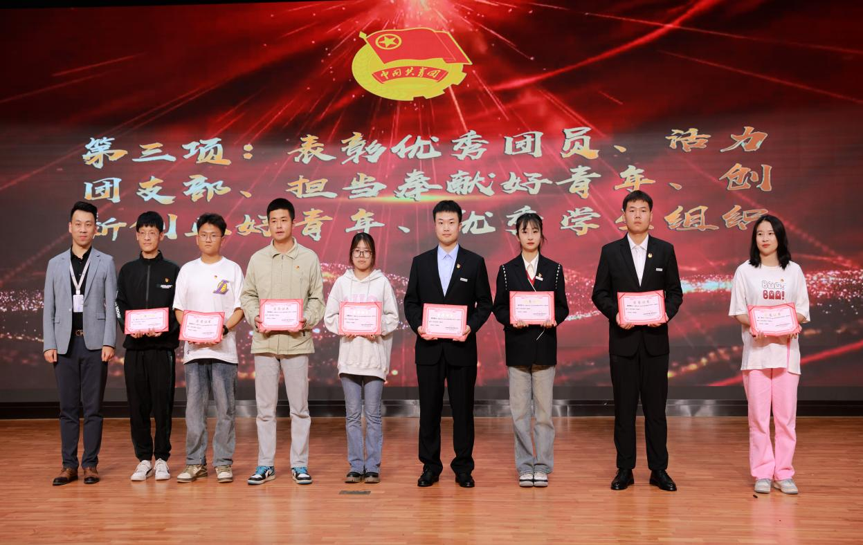 委员会关于2022-2023学年五四表彰的决定》。在场领导们分别为活力团支部、优秀学生组织、优秀团员、担当奉献好青年、创新创业好青年、基层组织建设先进单位、加强校园文化建设先进单位、新媒体与网络宣传先进单位、志愿服务与社会实践先进单位、志愿公益好青年、社会实践好青年、阳光团总支、支持共青团工作好书记奖、五四青年奖章获奖代表颁奖。