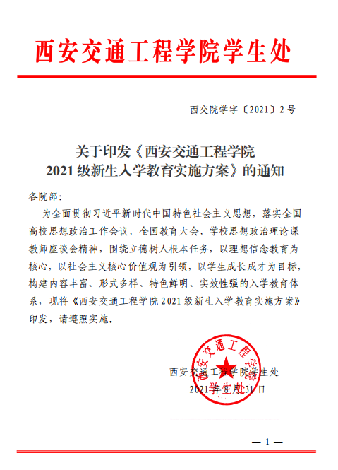 (二)各院部要根据实际情况制定新生入学教育方案,并将入学教育方案于 2021 年 9 月 5 日前上报学生处,在方案中要注重体现:集中教育与长期教育相结合,全面教育与重点教育相结合,日常教育与人文关怀相结合。