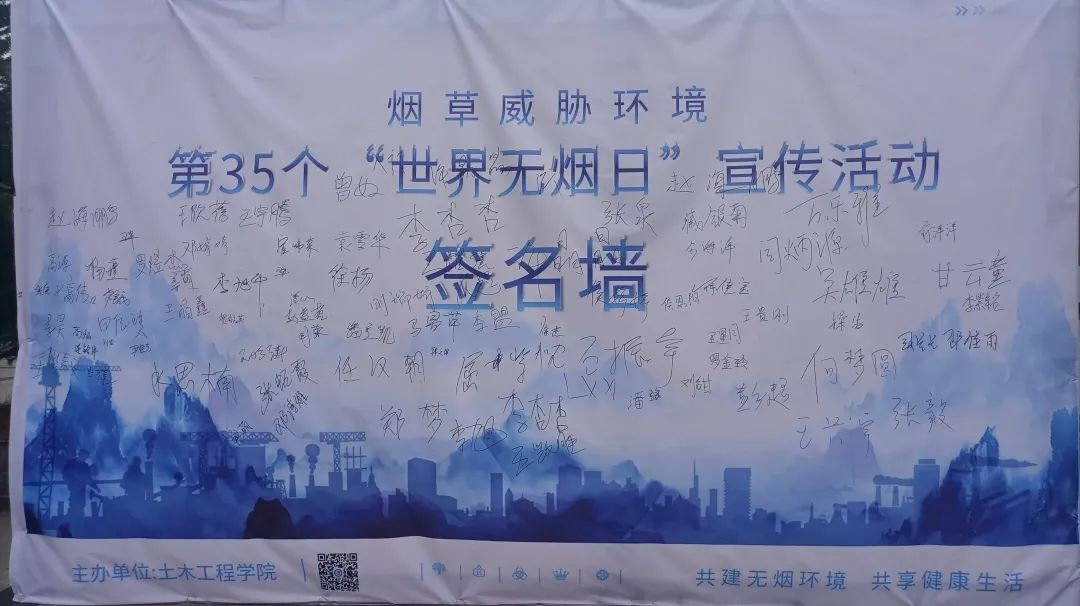 最后是活动签署环节。在签名墙上我们签署的不单单是我们的名字,更是那份对安全的郑重承诺。签名墙上的每一个名字,都彰显了我们禁烟的决心,远离烟草,禁烟从我做起。