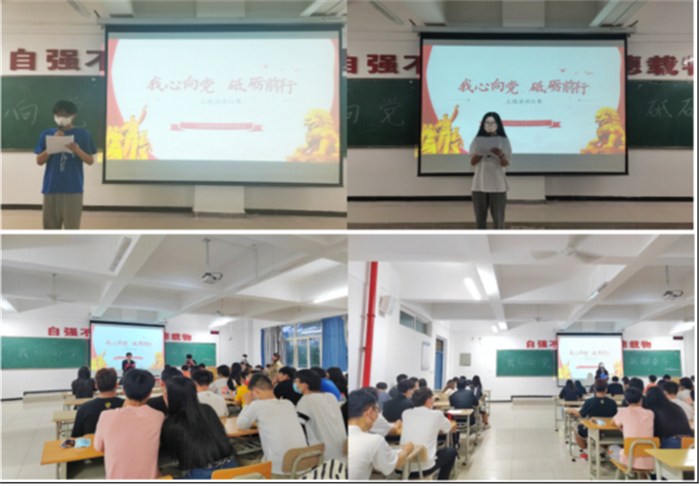 ——开展“我心向党、砥砺前行”演讲比赛。为更好发挥党史“资政育人”的作用,让初心薪火相传,把使命永担在肩。活动中,每位同学实力在线,演讲感染力十足,通过讲述中国共产党成立的艰难历程、在党的庇佑下成长起来的一代代共产党人以及发生在自己身上的故事,情感真挚、眼神坚定、催人奋进,将爱国热情和昂扬斗志展现的淋漓尽致,营造了浓厚的爱国爱党的现场氛围。