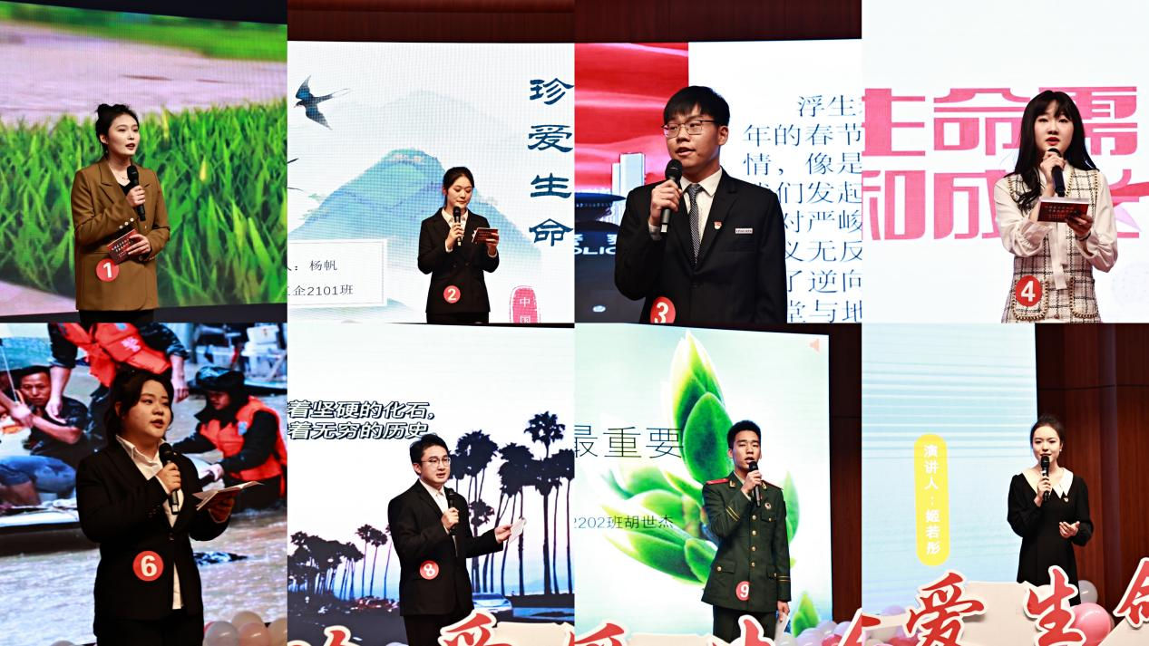 经过层层筛选,共有10名选手进入决赛。在比赛过程中,选手们各显其能围绕生命安全、疫情防控、亲情友情等,结合自身学习、生活实际,用感人肺腑的事例、发人深省的教训、深情并茂的语言,诠释了对生命的理解和感悟。《珍爱生命,正确对待挫折》、《珍爱生命,勇往直前》等演讲主要围绕当代大学生轻生这一现象,做了深刻的阐述,动情的演讲发人深思。《珍爱生命》、《珍爱生命,致不平凡的人》、《生命的意义》等演讲则围绕大学生如何才能实现生命价值,快乐且健康地成长做了充满活力的演讲。他们的演讲,内容立意深刻,情理交融;语言表达自然流畅,声情并茂;仪表端庄大方,精神饱满振作,精彩纷呈的演讲,赢得了的热烈掌声。演讲环节结束后,学生干部精心准备了暖场节目《明天会更好》和“珍爱生命”手势舞,活跃了现场的氛围。