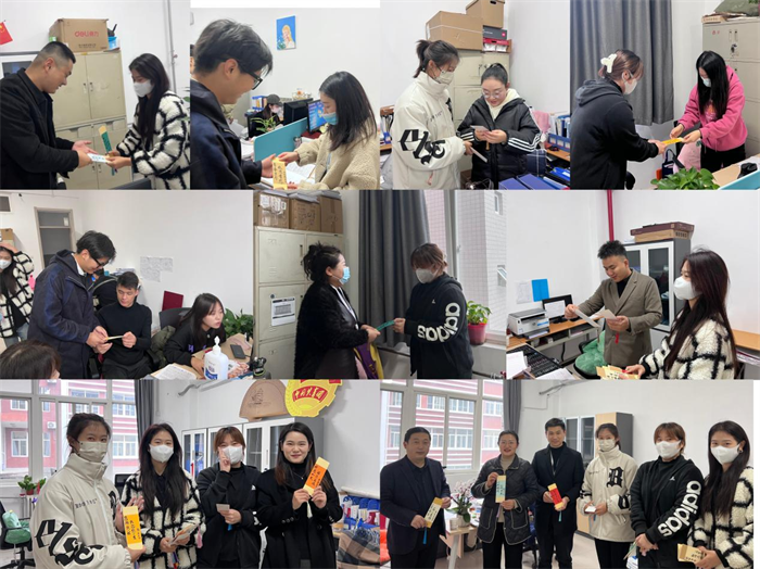 活动准备阶段,该院团总支学生会志愿者在校园里收集完整的叶片,然后发挥自己的书法美术专长,集中制作了一批银杏叶书签,分发给来到活动现场的师生们,其中“前程似锦”“平安喜乐”“万事胜意”“逢考必过”等词语最受欢迎,暖色的书签得到了同学们的一致好评。