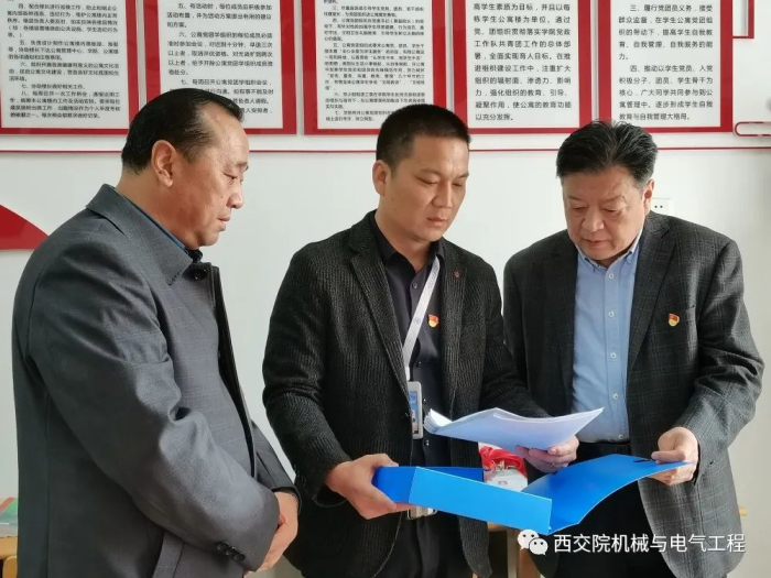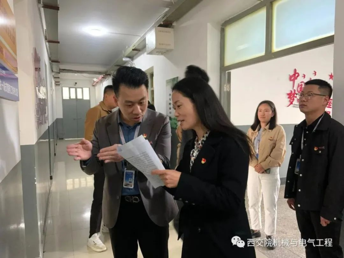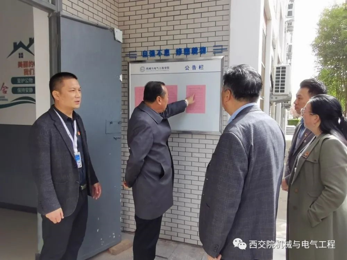 为改进和加强新形势下大学生思想政治教育和日常行为管理工作,更好地促进学生党团组织建设,积极推进“三全育人”,助力学生成长成才,4月6日上午,校党委书记马智勇、副书记王宁宁,副校长王勇、学生处处长钱穆萨及各分院书记在我院党委书记王拓辉的陪同下深入机械与电气工程学院学生公寓楼,现场考察指导党团组织进公寓建设工作。