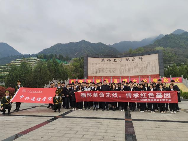 为深入贯彻习近平新时代中国特色社会主义思想,全面学习把握落实党的二十大精神,2023年4月4日上午,中兴通信学院全体师生来到金南山革命烈士陵园,开展“缅怀革命先烈,传承红色基因”主题的革命烈士祭扫活动,向革命先烈致以崇高敬意。学生第一党支部书记郭锦亮,团总支书记贾晶,辅导员黄新锐、陈娴以及团员青年60余人参加此次活动,活动由学生干部张晓义同学主持。