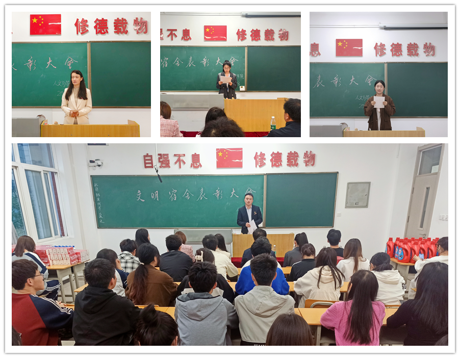 进一步推进校园宿舍文明建设,营造卫生、文明、整洁的宿舍生活环境,充分发挥优良环境在外化行为、内化道德方面的作用,培养德智体美劳全面发展的时代新人。4月13日,人文与管理学院在1-305教室召开了文明宿舍表彰大会,党委书记兼副院长李沙沙、副院长何成、年级组长及获奖宿舍同学代表参会。