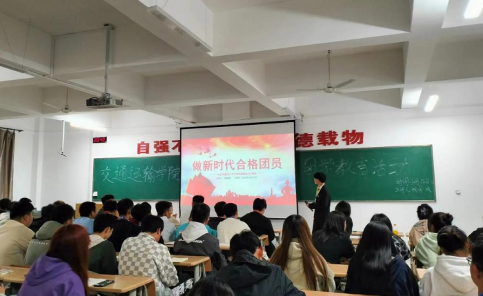 ——坚定理想信念,筑牢信仰之基。交通运输学院团总支学生副书记杨国成先从团的两个历史事件(五四运动和一二九运动)、对共青团的认识和如何做新时代合格团员三方面进行讲解。杨国成希望大家能做到自立自强,自信自律,培养自己社会竞争意识和创新发展意识。同时,他告诫同学们大学期间要认真对待学习,热情参与活动,积极向党团组织靠拢。