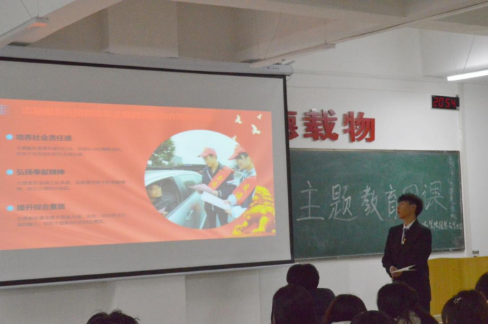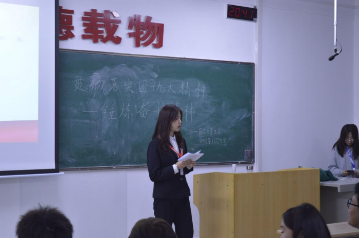 团总支学生会组织部部长叶知秋带领大家进行第二次主题团课学习