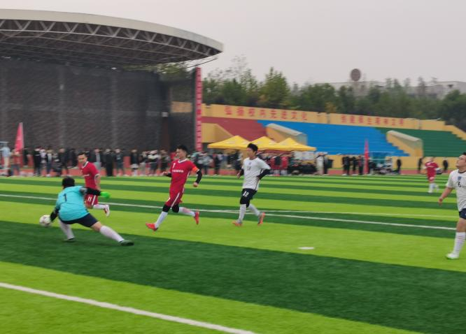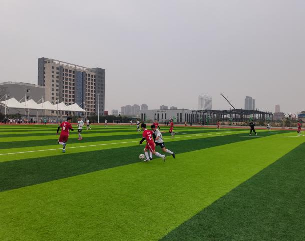 随着裁判的一声哨响,比赛正式开始。运动员们精力充沛,猛烈进攻,队员们充分发扬“友谊第一、比赛第二”的精神,团结一心、顽强拼搏、勇创一流,用精湛的技术和默契的配合赢得观众阵阵掌声、喝彩声,他们以精湛的脚法,巧妙的过人技术为同学们呈现了一场精彩的足球赛。